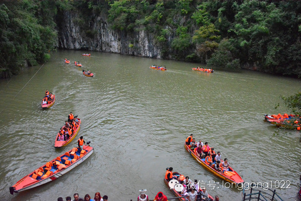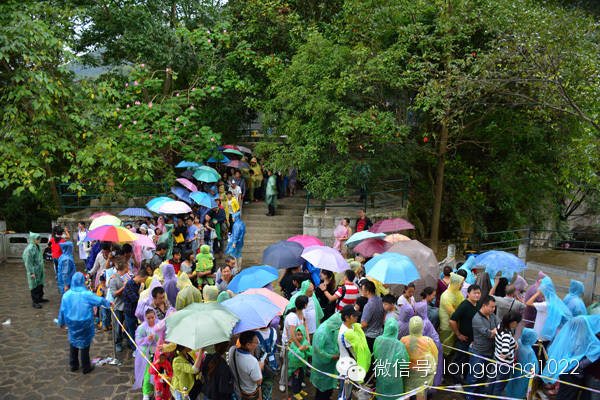 黄金周进入第四天,龙宫风景名胜区客流量仍然维持在较高水平,天空断断续续的下着蒙蒙细雨,却丝毫没有影响游客游玩的热情。据了解,上午10点,景区各停车场已经停满。景区在游客高峰到来前提前做好准备,布置回形栏杆,并对游客进行疏导。下午2点景区游客数量达到高峰,天池上游船如梭,来往运送游客,天池码头的游客队伍在景区工作人员的引导和指挥下耐心等待,井然有序。