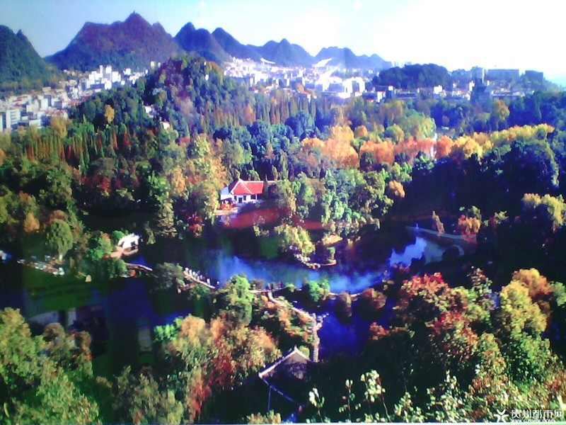 在贵黄公路途中右侧,花溪公园则多了几分妩媚,似乎这里的春天特别早,湖水清悠,色彩绚烂,湖水欢快的在石背上跳过,登上小山,眺望四野,可称度假妙地,满目葱茏,碧波荡漾,清雅的别墅点藏期间,在满地梧桐叶的黄金大道上,看着学生边烧烤边大声唱歌快乐飞扬。