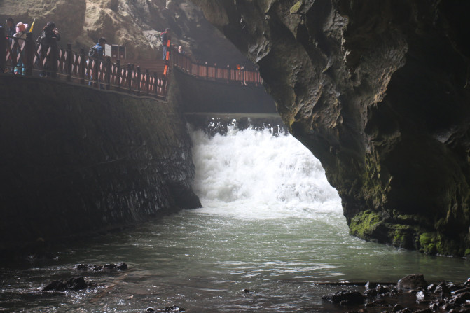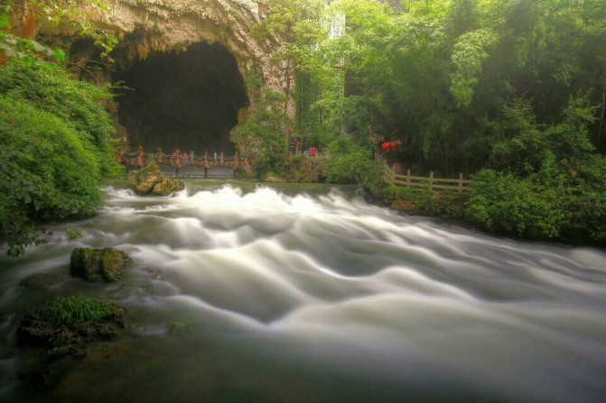 作为黄果树瀑布的上游,龙宫当然是河流环绕,自然也就有了桥。有山有水,小桥流水人家,一种