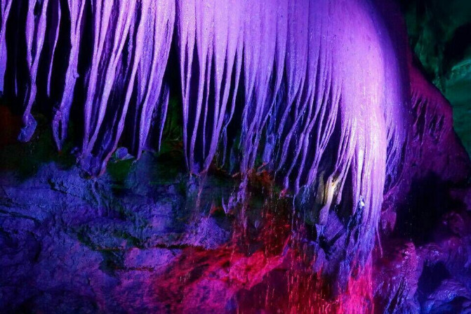 是也别有一番风味。作为中国洞中瀑布之最的龙门飞瀑,像极了天窗里飞奔而下的飞龙。流水劈石