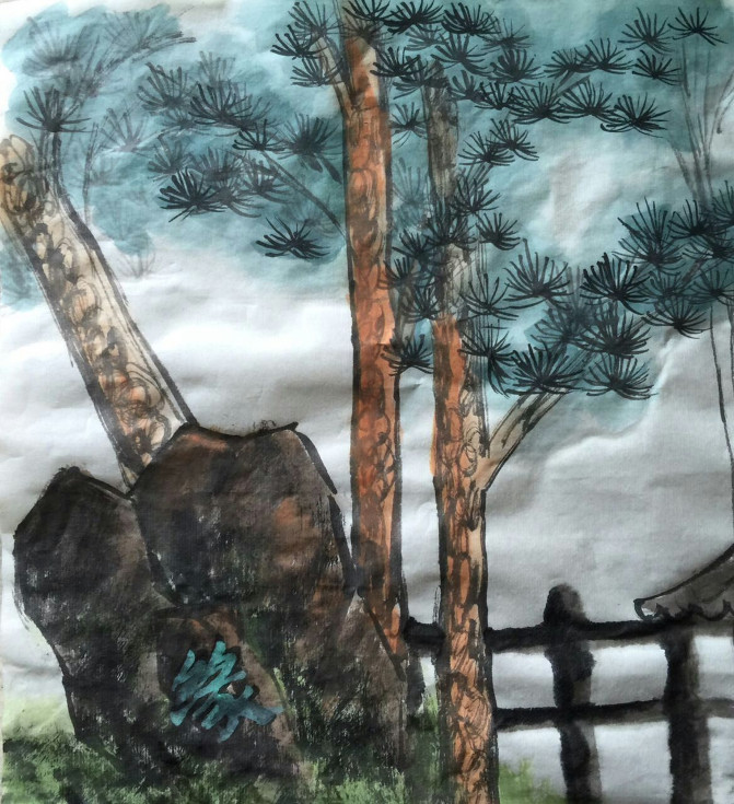 几节台阶后,是寿字壁,一个石头上刻着一个巨大的寿,中间还有一个福字,导游讲闭眼摸中间的