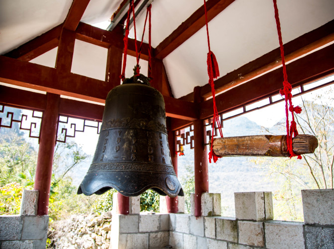 爬到了接近山顶的地方有一处钟楼,上面有口大钟,撞钟图吉利,排着队撞了钟感觉头嗡嗡响,一
