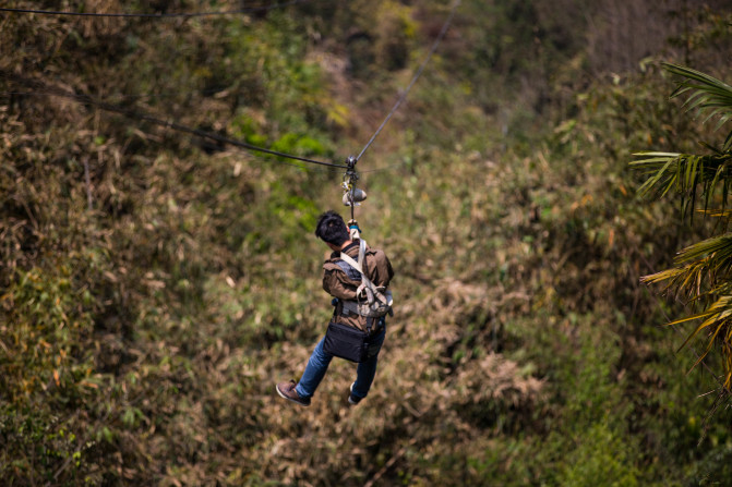 不远处是一处滑索,从这边山头滑到那边山头,要40元/人,大学生青春活力勇猛无敌都要上,十几