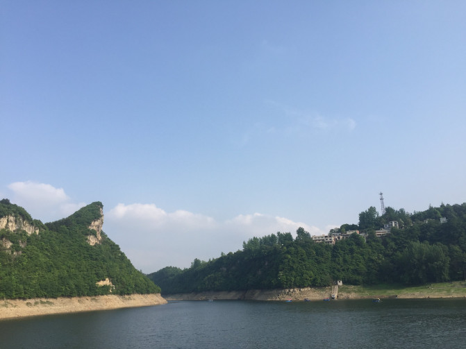 龙宫出来之后,乘坐景区摆渡车,每人20元,回到入口停车场,驾车前往镇山村,布依族村落。一路上的风景很美,天气也很棒。大概四点左右到达村落,车很多,但可能是因为不知道固定的游览路线,反而我们行走的路线没有见到什么游人。偶遇村落婚礼,见到摆酒席,放鞭炮,新人家人对歌,很赞。民族文化只有这样传承才能生生不息吧。村落下面有一个很大的湖泊,湖泊边上的山脉据说像青蛙。唯一煞风景的是在竖立着严禁游泳的湖边还有四位男士在湖里面“不亦乐乎”,嬉戏耍闹。实在让人很无语。